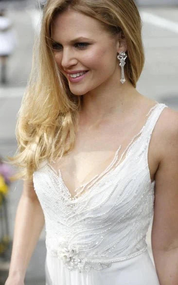 Chiffon Lace Weddig Dress With Beading Sequins Flower