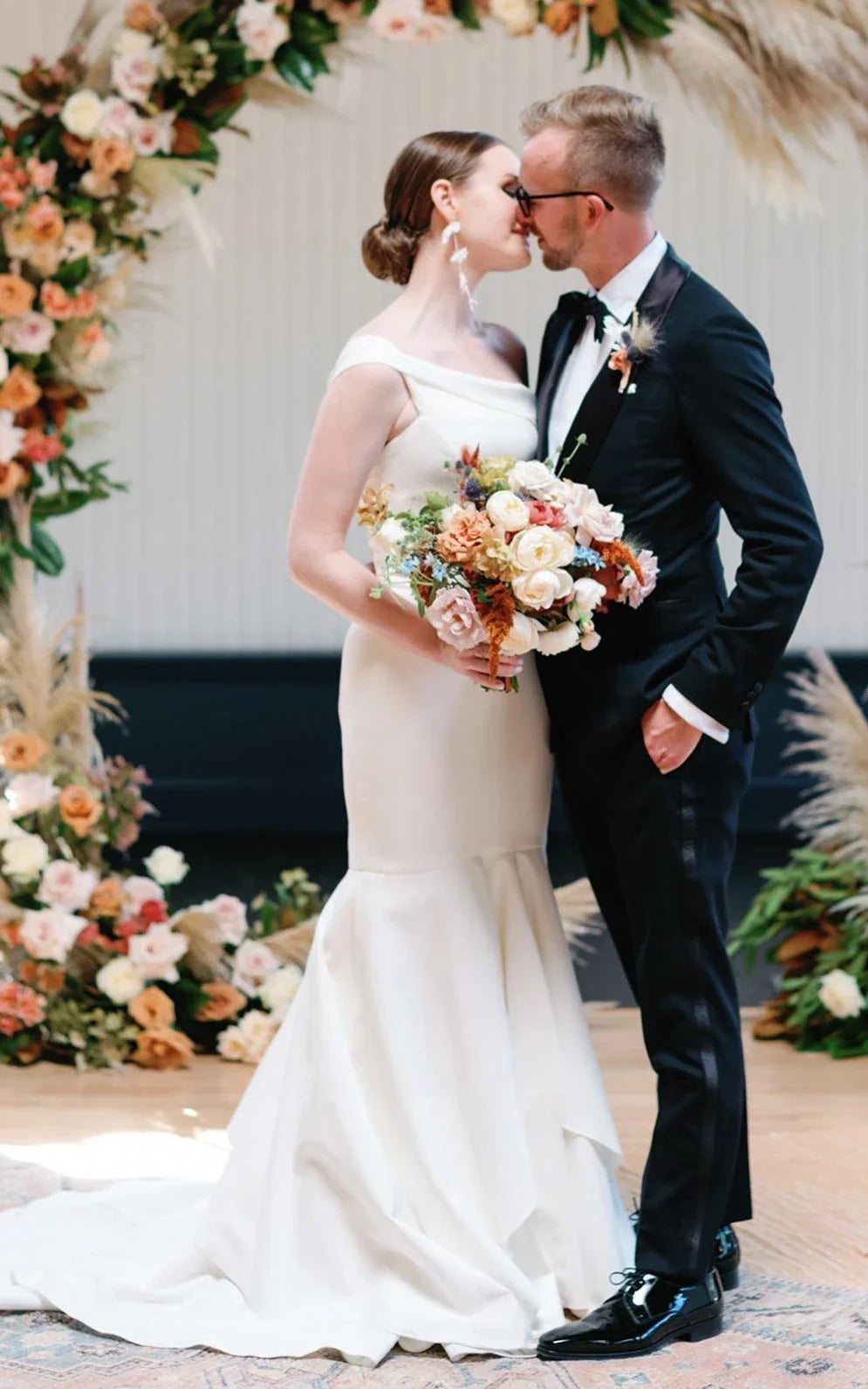 Mermaid One-shoulder Satin Sexy Wedding Dress Sleeveless With Court Train