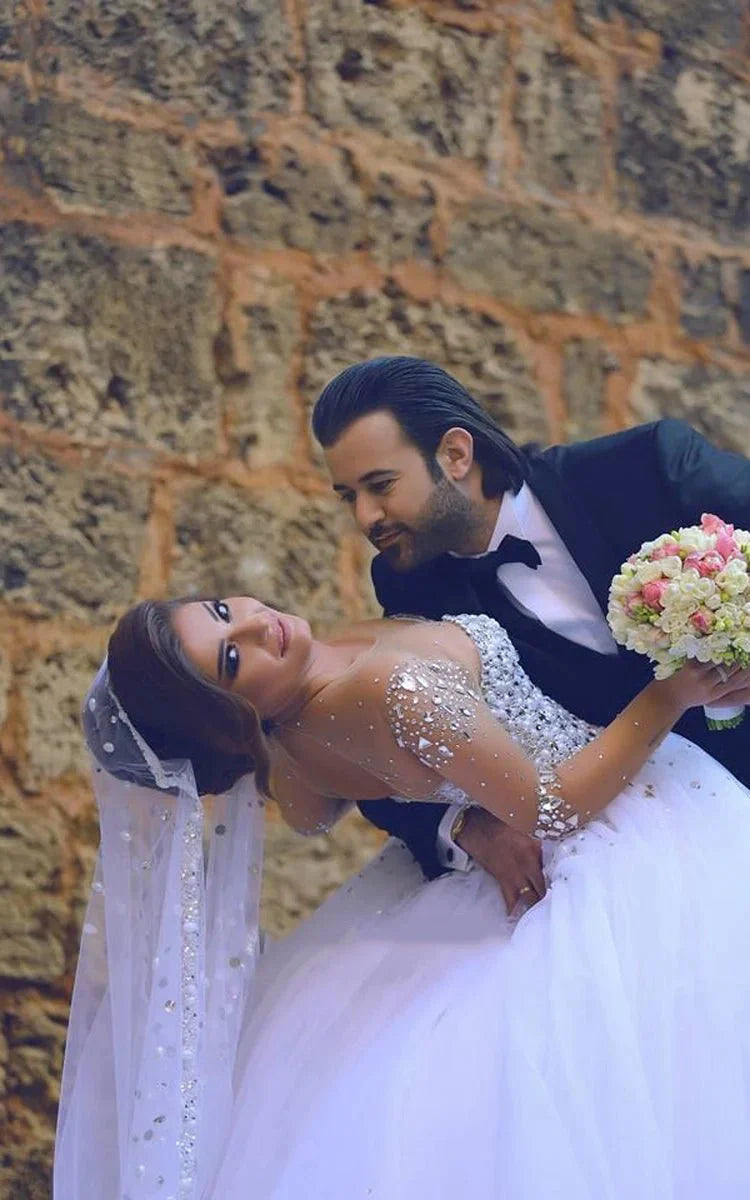 Vintage Long Sleeve Beadings Ball Gown Tulle Lace-Up Wedding Dress